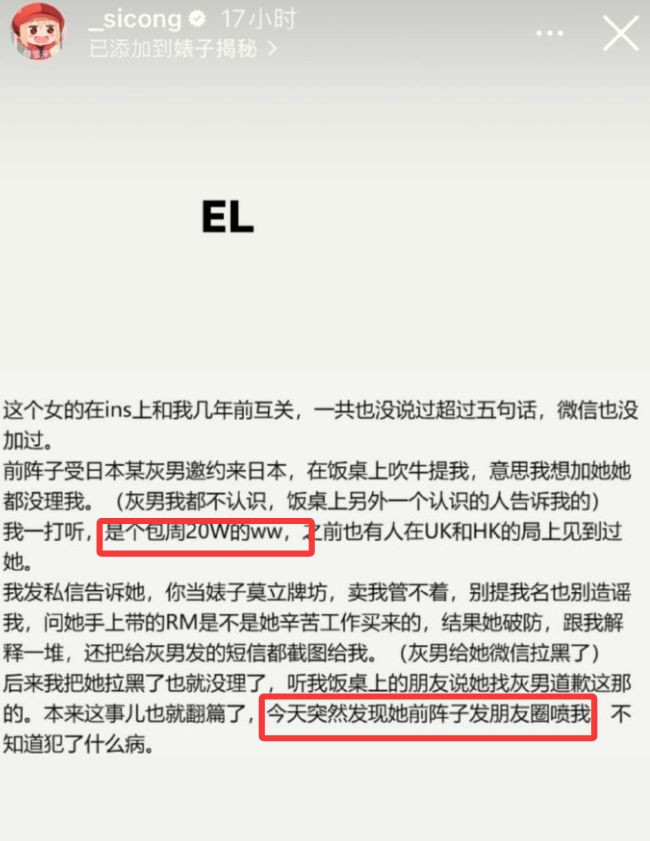 女网红EL这次是被“精准打击”。