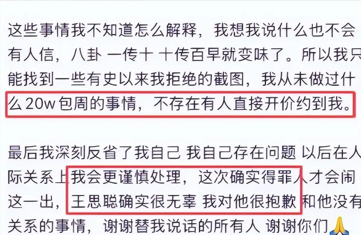接着否认外围身份,否认“20万”定价,否认被包养。